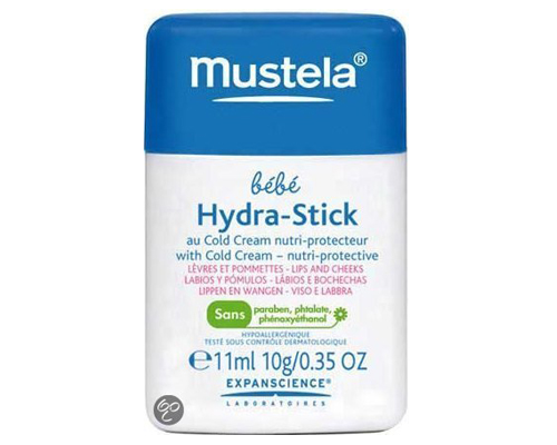 Mustela Bébé Cold Cream Nutri-Protective Hydra Stick is speciaal ontwikkeld om de lippen en de overbelichte zones te beschermen. De hydra-stick voedt, beschermt en hydrateert. Het verhindert het uitdrogen van de gevoelige zones, zoals de lippen en de wangen. Het vermindert de kloven ter hoogte van de lippen. De crème heeft een hoge huidtolerantie, wordt gemakkelijk aangewend en plakt niet. De stick heeft een praktisch formaat om mee te nemen.